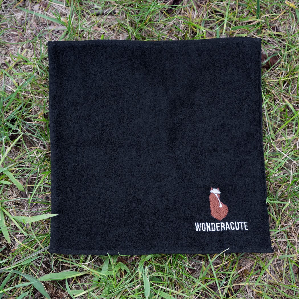 ワンダーアキュート画伯が大きく刺繍されたハンカチタオルです。
