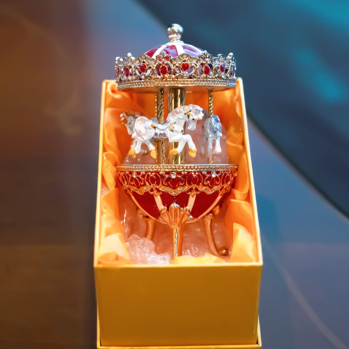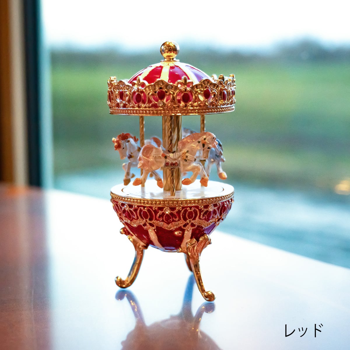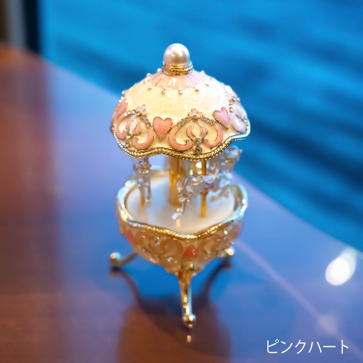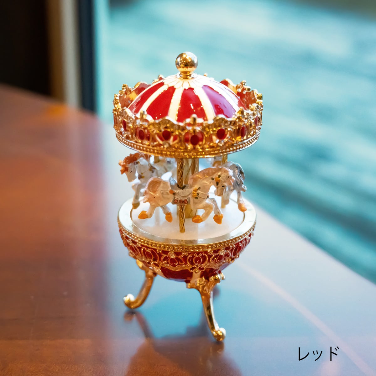 美しい装飾が目を惹く、メリーゴーランド型のハンドメイドオルゴール。